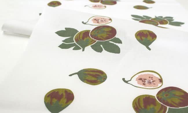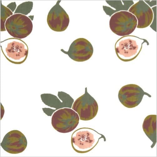 たわわに実った無花果の様子を手ぬぐいにしました。 少しずつ秋の気配が感じられる頃、姿を見せる無花果。 西洋では「実が沢山なる」ことから 豊饒や子孫繁栄を表す果物とされ、 東洋では不死の象徴とも言われています。 手に取ると、細やかなデザインを支える 染の技術を感じます。 皮の複雑な配色や実の細かさをご覧ください。 柔らかな色合いと、 中心で反転する構成がバランス良く整い、 額装しても映える一枚です。