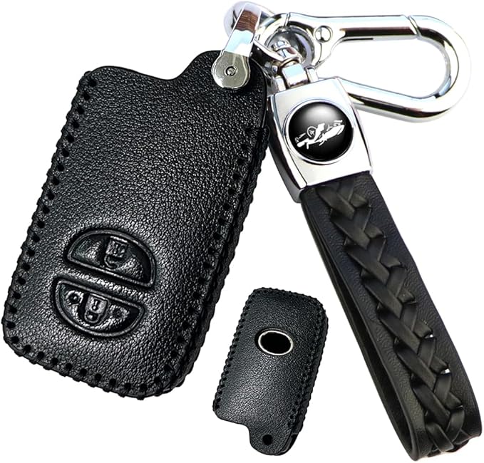 【商品仕様】:高品質レザーキーケース。トヨタスマートキー専用カバー。レザー素材に黒線刺繍を施し、クールでおしゃれなキーケースとなっております。背面にはトヨタ純正エンブレムが見えるように穴加工を施しており、純正らしさを出しております。※純正品ではございません。