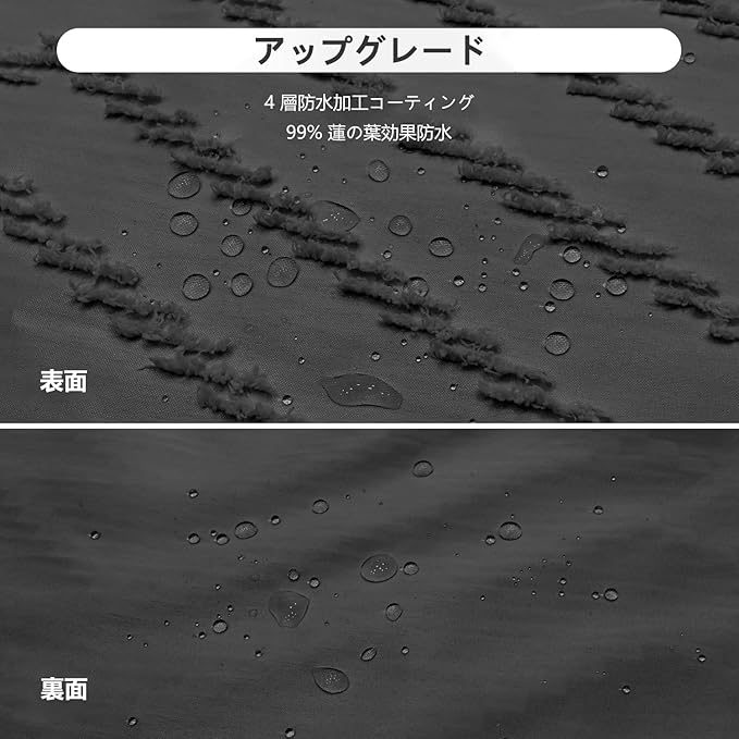 撥水性シャワーカーテン:本タフテッドシャワーカーテンは防水加工面を備え、水滴を速やかに滑落させて水の飛散を防止。布製素材は機械洗濯可能で速乾性に優れ、浴室の清潔を維持します。