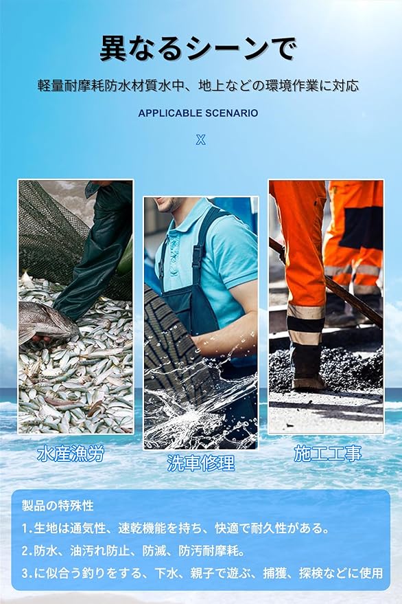 ユニバーサルな用途: 伸縮性のある肩紐でフィット感を調節可能。サーフィン、川釣り、農作業、漁業、除雪、洗車など様々なシーンで活躍。釣り道具を収納できる収納袋付き伸縮性素材の肩ベルトは、快適なフィット感を提供し、さまざまな体型に対応します。