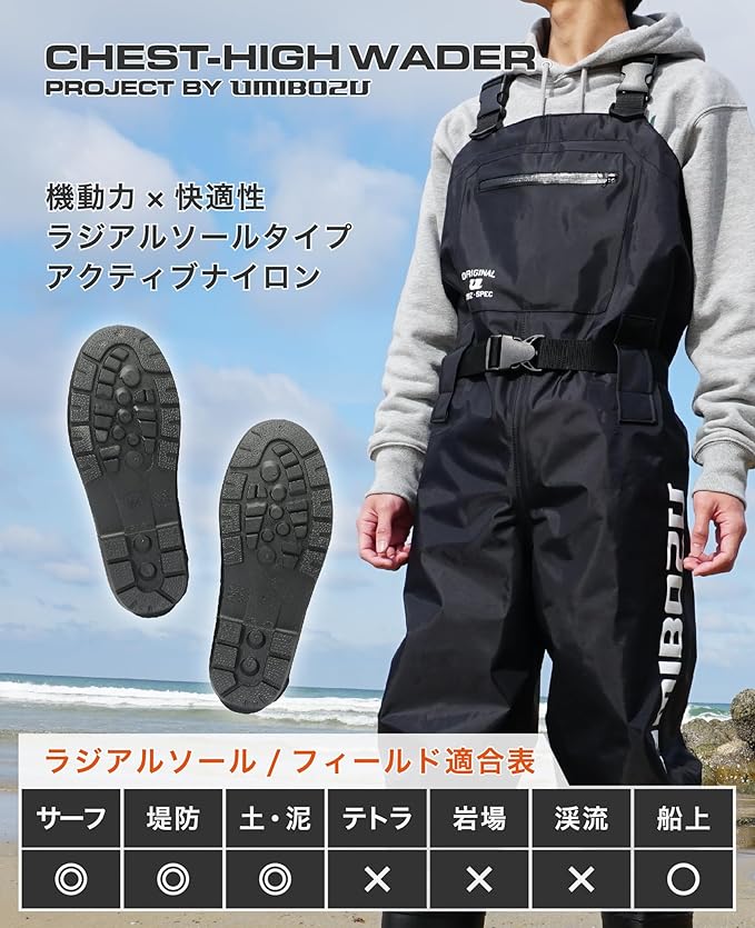 【ウミボウズウェーダー】サーフ釣りに特化したチェストハイウェーダー