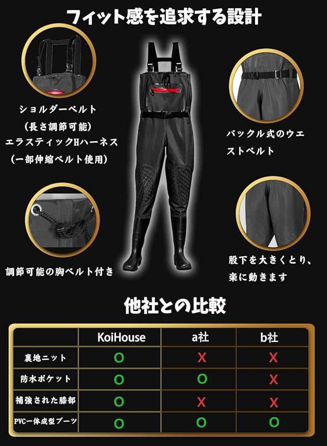 KoiHouse ウェーダー チェストハイウェーダー 防水 釣り PVCウェーダー 大雨 防災 対策 胴付き長靴 全5サイズ