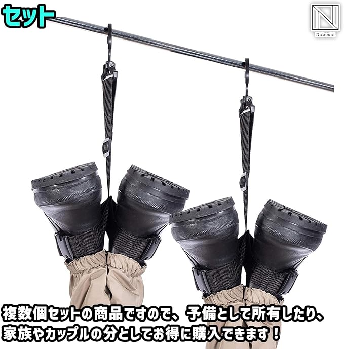 NABESHI ウェーダー フック ハンガー 吊り下げ ブーツ 長靴 アウトドア 釣り スノボ 洗濯 乾燥 調節可能 (2個セット)