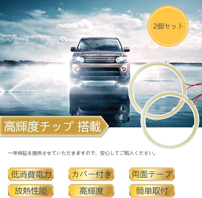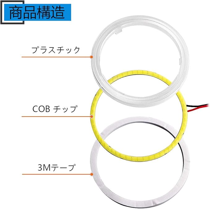 YongMing COB イカリング ホワイト led ヘッドライト フォグランプ 70MM 45連 拡散カバー 安定器付き 2個