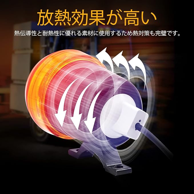 【素材からこだわったランプボディ】ボディは長寿命を持つABSプラスチック製。固定用ブラケットとボルト・ナットは強度強いスチール製。固定用ステーは振動に強いゆるみ防止仕様で、そして装着パイプ径によってサイズが調節可能なタイプです。