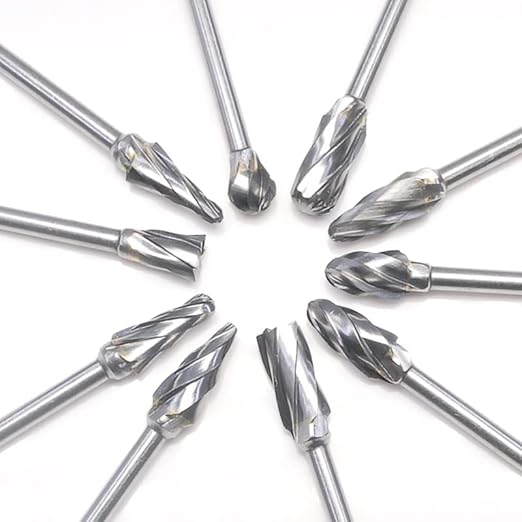 Wolfride 10本セット リューター ビット 超硬ドリルビット 電動ドリルセット 太い歯 超硬カッター ルータービット シングルカット 研磨ルーター工具 超硬バー 電動リュータービット やすり ヤスリ プラスチック/金属/ モデル/木工用 3mm軸 刃幅6mm