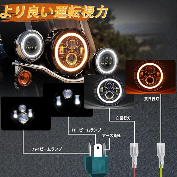適合車種:オートバイ(7インチヘッドライト仕様の車)