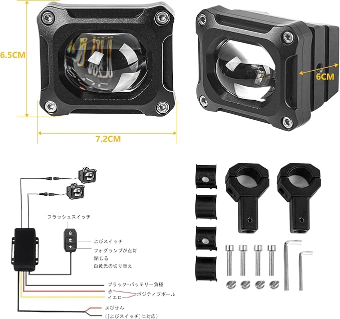 特徴 イエロー ロービーム, ホワイト ハイビーム, ホワイト/イエロー2色, ワイヤーハーネス コントローラー付き, 防水