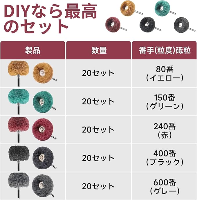 【適用仕様】リューターバフは軸径3mm、直径25mm、小型で繊細な対象物の研削と研磨用に高効率作業工具,狭い箇所、凹凸部でも適用する研磨セット。良好な研磨効果、高効率、低コストを備えています