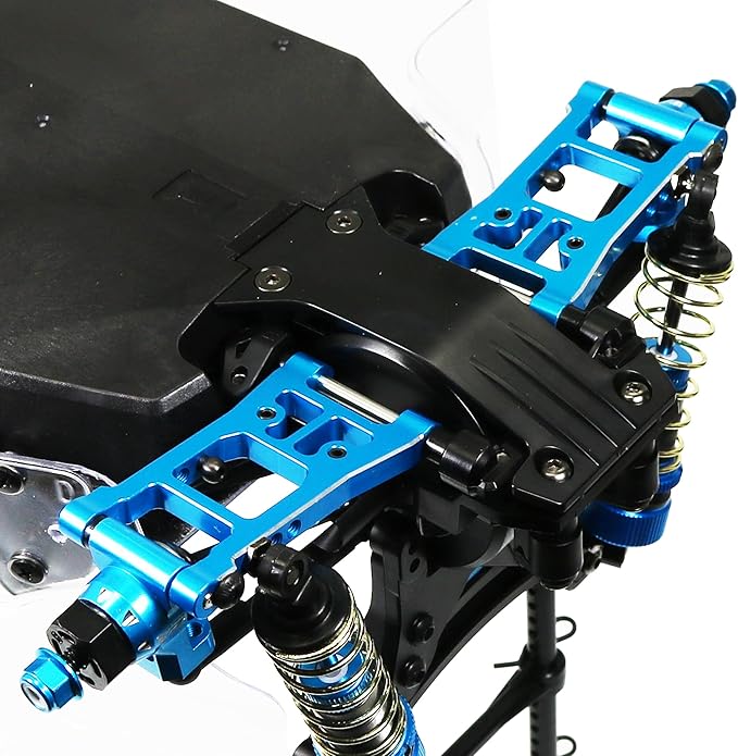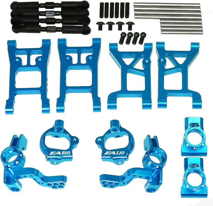高精度CNC切削機により生産された、60-61硬質アルミ製の足回りセットになっております。 剛性を高め、スムーズな駆動を実現したサスは、ダンパーの動きやステアリングワークを助け、よりレーシーな走りをサポートします! キャスター角10度のフロントブロックは直線安定性を確保致します。 S2硬質スチール製ターンバックル式アッパーアームにより、キャンバー角の調整も簡単です! サスピンは、更なる(十分な)耐久性とスムーズな可動を実現した304ステンレススチール仕様となっております。 簡単にXV-02シャーシに取付けが可能です。