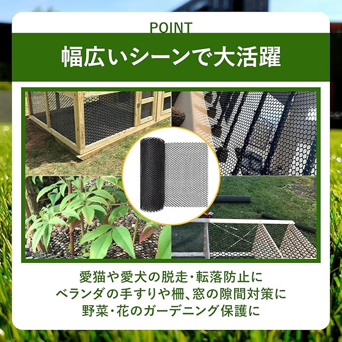 【幅広いシーンで大活躍】愛猫や愛犬の脱走・転落防止に/ベランダの手すりや柵、窓の隙間対策に/野菜・花のガーデニング保護に/防鳥・害獣除けのガードネットとして など