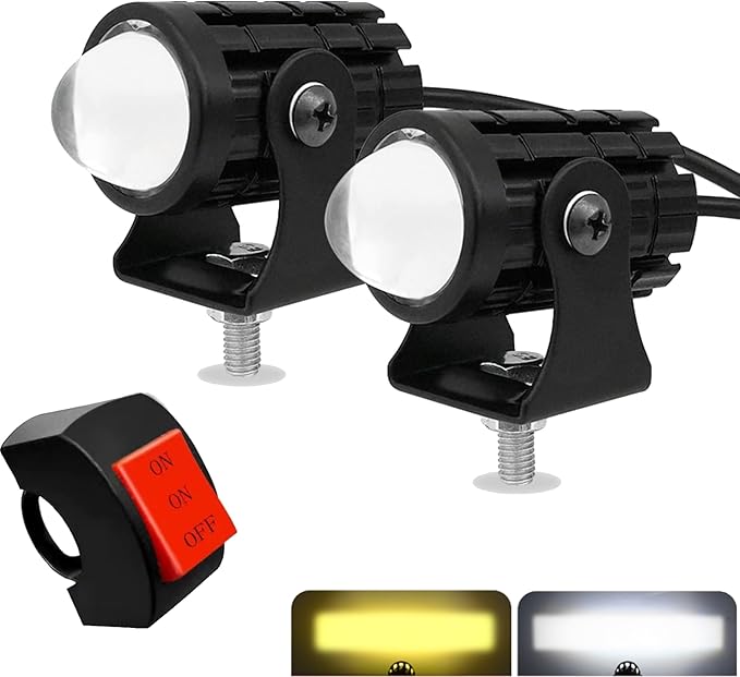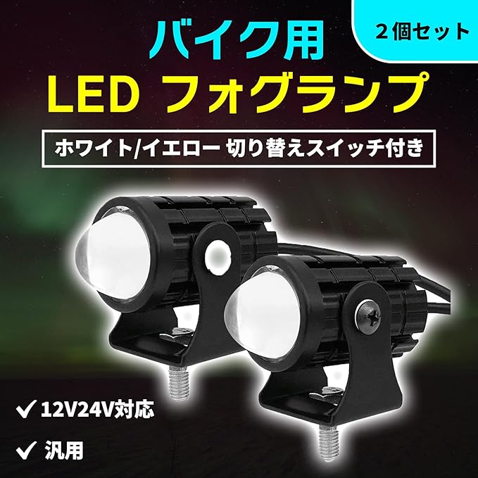 ROOOCYY バイク用 LED フォグランプ 汎用 12V 24V ホワイト イエロー 切り替え スイッチ付き 2個セット
