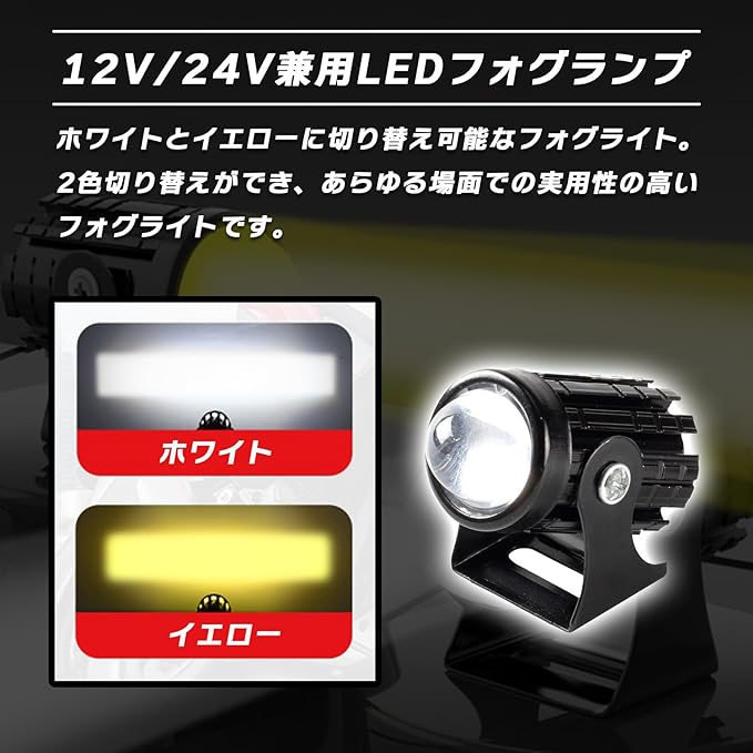 ✅【12V/24V兼用LEDフォグランプ】ホワイトとイエローに切り替え可能なフォグライトです!2色切り替えができ、あらゆる場面での実用性の高いフォグライトになります!
