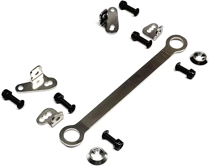 このステンレス製ブラケットセットは、プラスチックシャーシの強度を強化し、ショックアブソーバーの固定位置を増やすことができます。