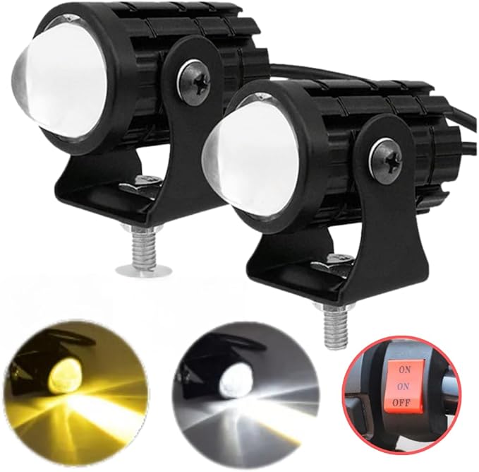 one+lifestyle LEDバイクフォグランプ 2個セット 12V/24V対応 2色切替 ホワイト/イエロー 高輝度 スイッチ付き