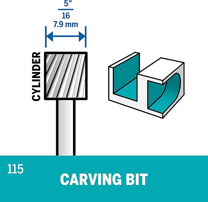 軟質金属やプラスチック、木材の面取り、くり抜き、溝彫り、筋付け、またテーパー状(円錐形状)の穴をあけるのに使用します。 すべてのドレメル ロータリーツールで使用可能