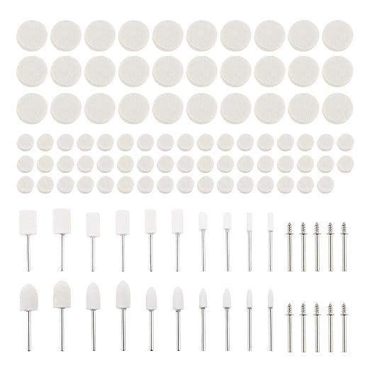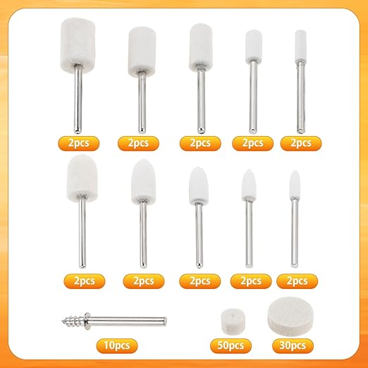 Dophee ウールバフ ミニルーター ビット リューター バフ 鏡面仕上げ 金属磨き フェルト 研磨 ガラス研磨用バフ 円筒/砲弾/ホイール型 バフ 110個セット 3mm軸