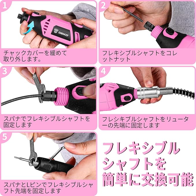 【便利なソフトシャフト】ミニリューターは高品質の銅製ソフトシャフトが付いてるので、柔軟性と安定性を兼ね備え、簡単に研磨、彫刻などの作業を行うことができます。よりラクかつ簡単にハードチューブ、インターフェースやコーナーなどを処理することができます。