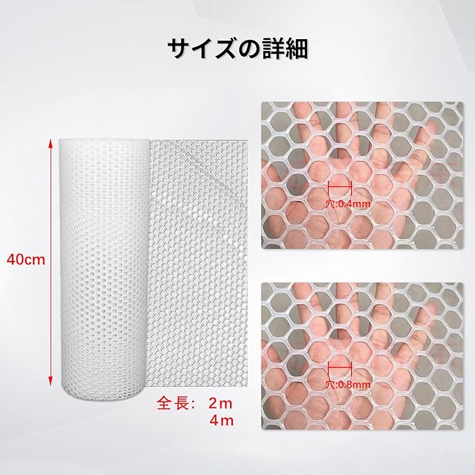 【任意裁断】プラスチックネットは軽量で曲がりやすく、一定の展延性を有し、孔径は菱形のデザイン寸法0.4MMと0.9MMを採用して固定しやすく、裁断が容易で、縁が滑らかで、多様なシーンの使用に対応できる。
