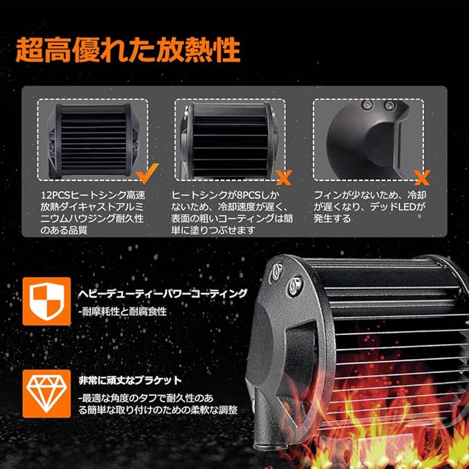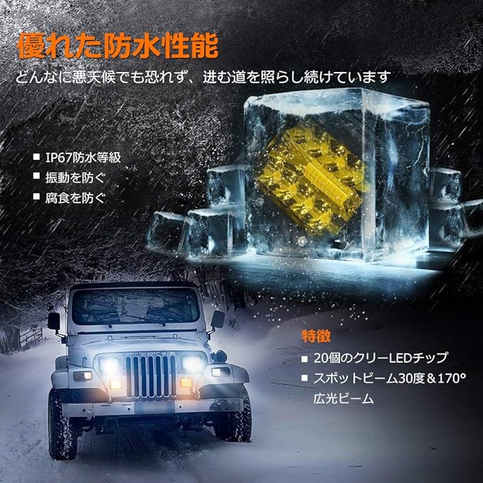 「特別なデザイン」:クロスカントリーテストの後、これらのLEDランプキューブは最も厳しい環境に対応するように設計されています。IP68防水等級のハウジングと飛散防止レンズにより、湿気やほこりから完全に保護されています。 防錆・腐食防止用6063アルミニウム合金ハウジングと取付金具により耐久性が向上します。