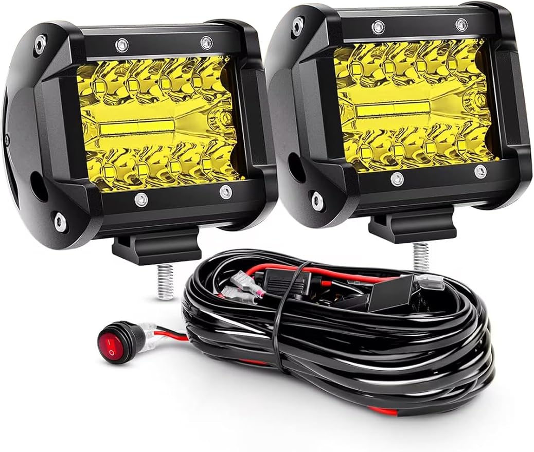 Chelhead 作業灯 4インチ フォグランプ 角形 イエロー リレーハーネス付き 60W LED ワークライト 12V-24V対応 汎用 車外灯 補助 農業機械 2個セット
