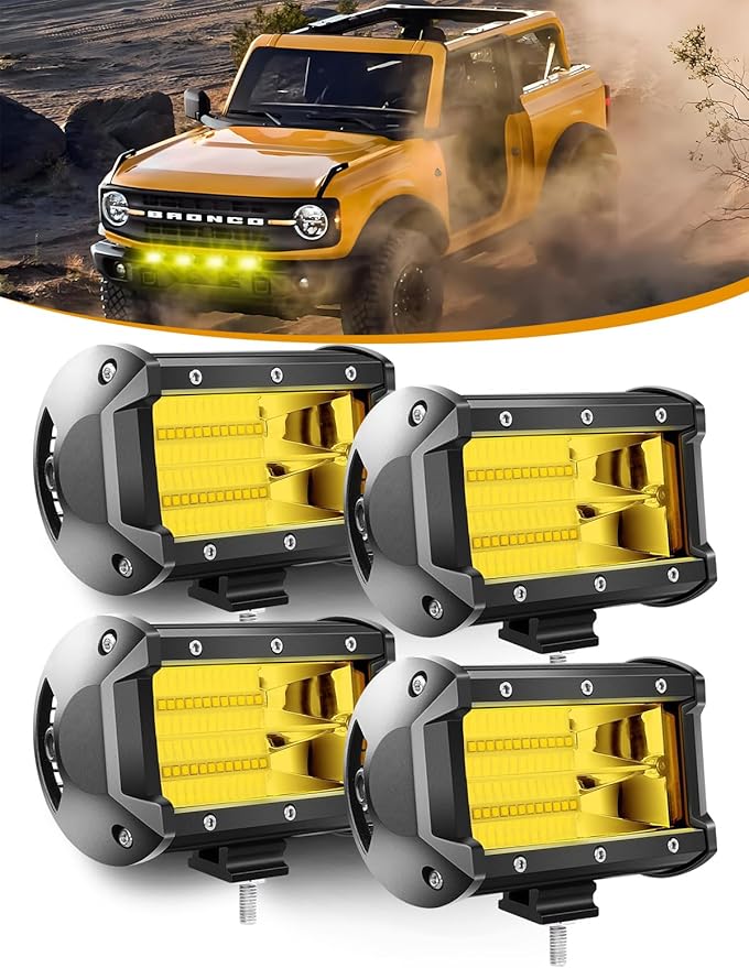 Chelhead LED作業灯 5インチ フォグランプ バイク 72w イエロー 12-24v 兼用 広角狭角一体 トラック 重機機械 ガレージ ライト デッキライト 集魚灯 前照灯 Suv ジープ ジムニー 4個セット