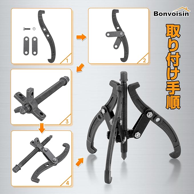 Bonvoisin ギアプーラー 2本爪/3本爪変更可能 60~150mm 高硬度 プーリ抜き ギア 外し プーラー (適用外径:150mm迄)