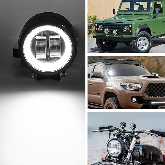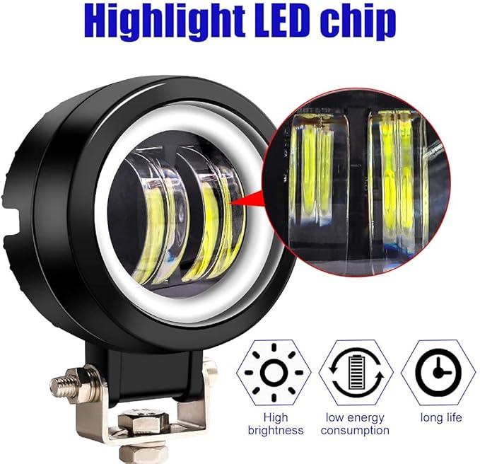Biqing 20W バイクフォグランプ イカリング付き LED作業灯 ワークライト 12V/24V 狭角 スポットビーム フォークリフト オードバイ用 バイク補助灯 丸形 1個セット+スイッチ (ホワイト+ホワイト)