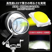 【発光モード変更可能】ホワイト/イカリング の2種類に切替することが可能です。高輝度LED素子を2粒搭載しており、各発光素子に4Dレンズを装備。