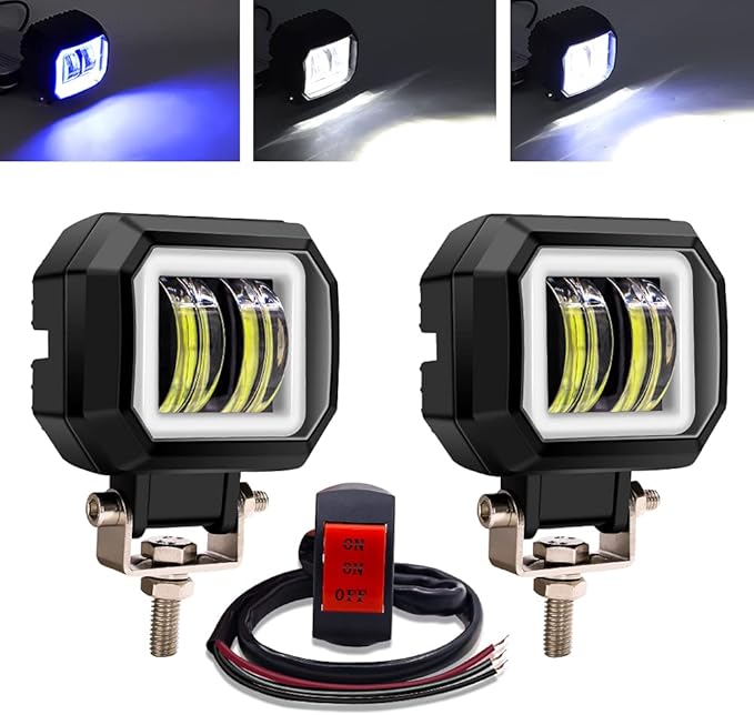 ★【Aoling LED作業灯 12V24V バイク フォグランプ ブルーイカリング & スイッチ付き】