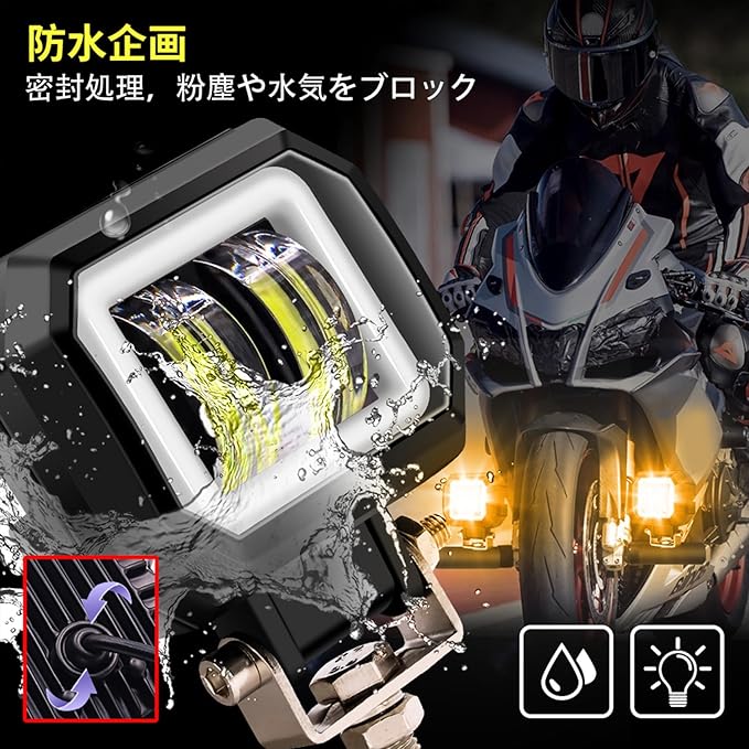 ★【放熱性と防水性】高品質のアルミ合金製で長持ち、櫛形ヒートシンクの放熱設計により放熱性能に申し分がありません。通常状況では50000時間以上も使えます。IP68防水機能を備えたこのバイク フォグランプ ledは、防水、防塵、防錆に優れます。