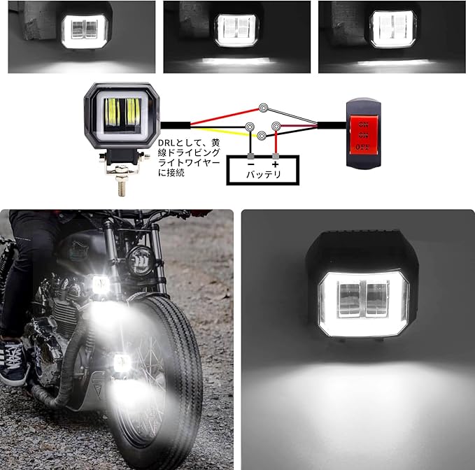 ★【取り付けが簡単で幅広い用途】角度調整可能ステーを備えた当製品は、ネジで固定し、ワイヤーを正しく接続するだけで装着完了のものです。調整可能な取り付けブラケットがあることで、自動車、オートバイ、バイク、トレーラー、フォークリフト、トラクター、除雪車などほとんどの車両にも・船舶にも、当社のバイク追加ランプはご需要に応じて自由に使用できます。