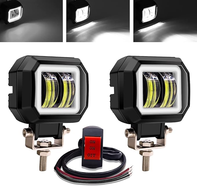 Aoling LED 作業灯 ワークライト 12V 24V 防水 フォグランプ バイク用ヘッドライト補助灯 車用ワークライト ホワイトイカリング付きデイライト 電気自転車 ボート汎用