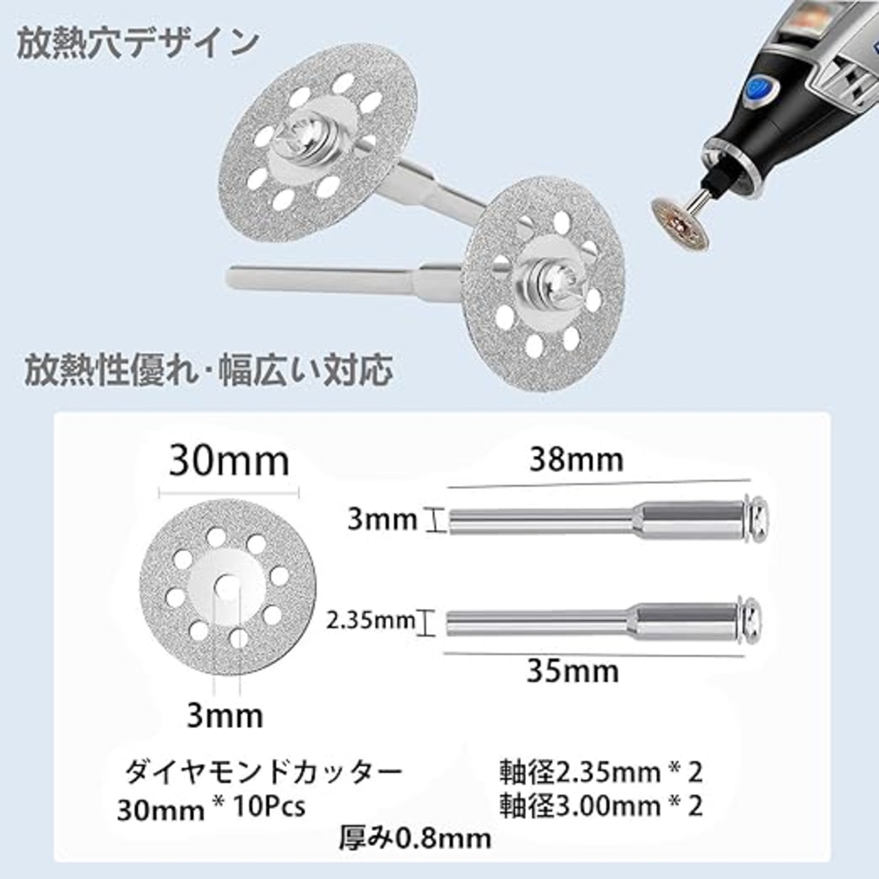 【パッケージ内容】リューター ディスク*10Pcs、マンドレル*4Pcs:軸径2.35mm*2、軸径3mm*2