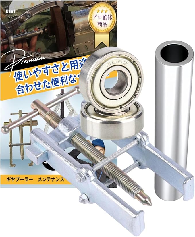 【プロ監修】UTST ベアリングプーラー ベアリング グラインダー 交換 修理 ギアプーラー ベアリング外し (プーラー+ベアリング2個+筒1本, 鉄製, 608z)