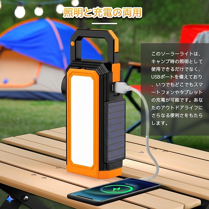 【2025新型】ソーラー ランタン LED ランタン キャンプランタン USB充電式 スマートフォン充電可能 小型無階調光 6種類のライトモード IPX4防水ソーラーライトキャンプ用品 ぶら下げ 折りたたみ式 防災停電節電対策 超高輝度 日本語取扱説明書付き