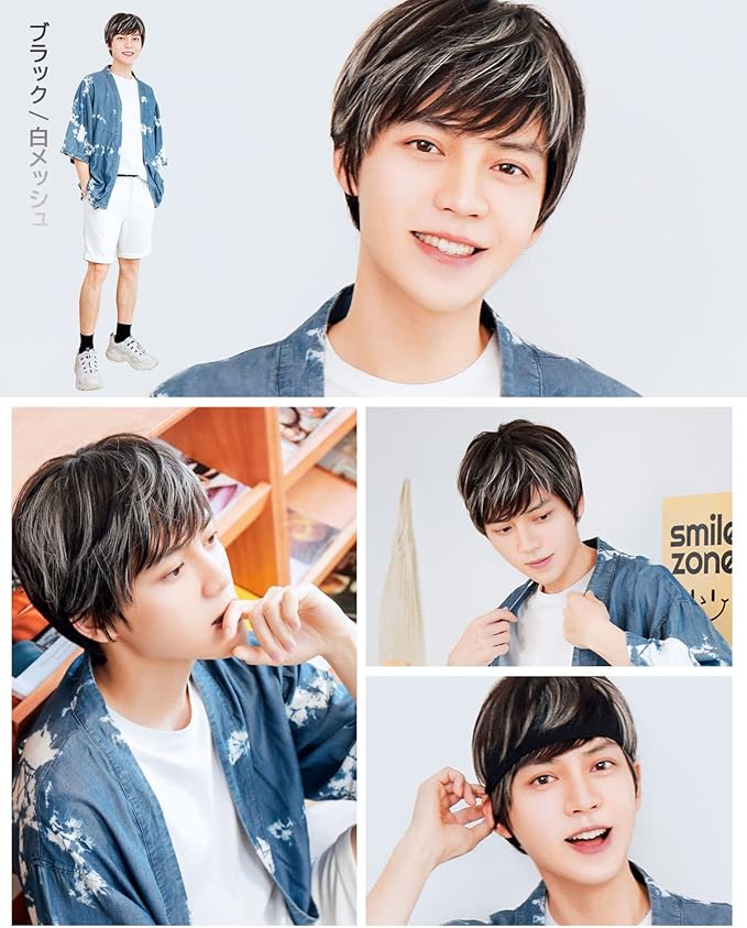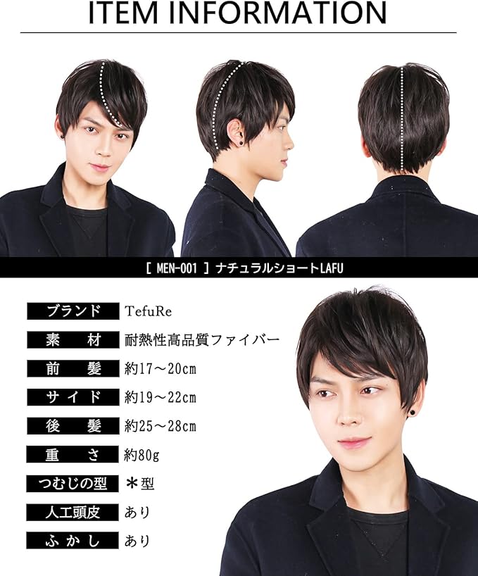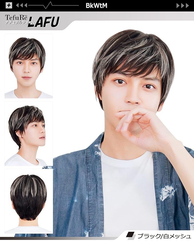 [TefuRe] メンズウィッグ ショート 自然 メンズ ウィッグ かつら 短髪 男子 韓国 韓国アイドル風 メッシュ グラデ 男性 女性 にも ウィッグネット 付 耐熱 ナチュラルショート LAFU MEN-001
