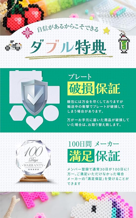 [ハリスラボ] アイロンビーズ セット 5mm 『デラックスセット』 48色 図案100種類 約10000粒 白 黒 Mix 補充付き ビーズアイロン シート プレート ピンセット