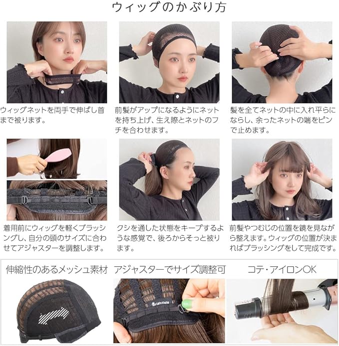 サイズ:フリーサイズ(頭のサイズ約49cmから57cm)アジャスターでサイズ調整可能。※ウィッグに伸縮性がある為、表記サイズより多少誤差があります。