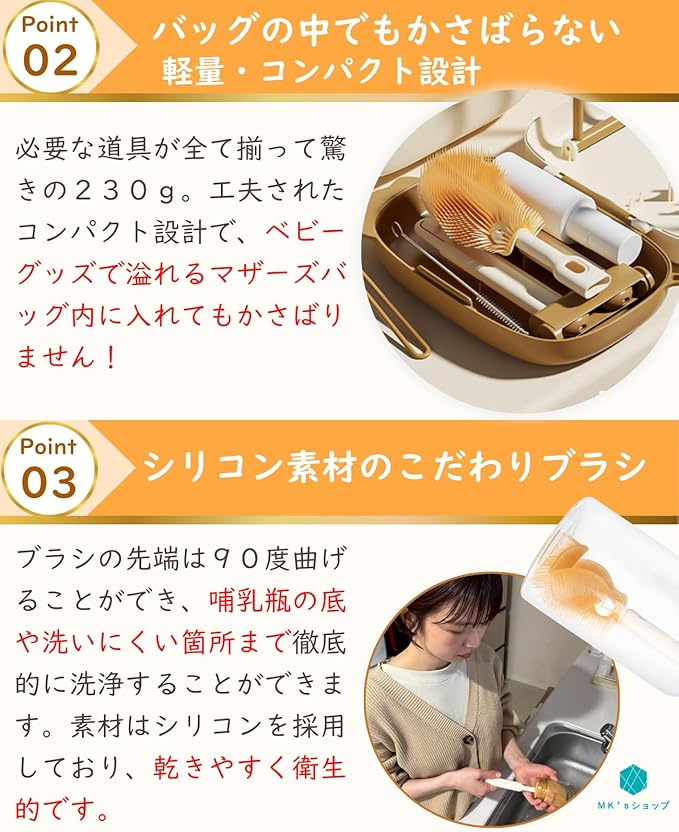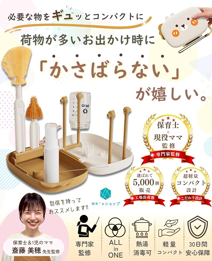 【保育士ママが監修】【かさばらないコンパクト設計】哺乳瓶洗いセット 携帯 旅行用 哺乳瓶洗い 持ち運び 乾燥 哺乳瓶ブラシ MK’sショップ