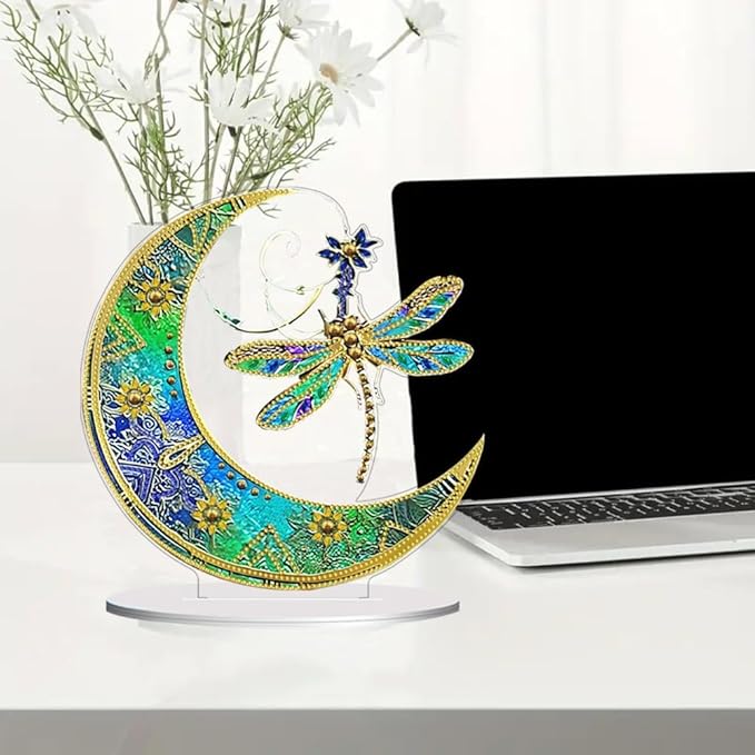 Awesocrafts ダイヤモンドアート テーブルトップ オーナメント 月 トンボ 5D ダイヤモンドペインティング 卓上装飾 特殊形状 クリスタルアート クリスマス デスクトップ 装飾 (月)