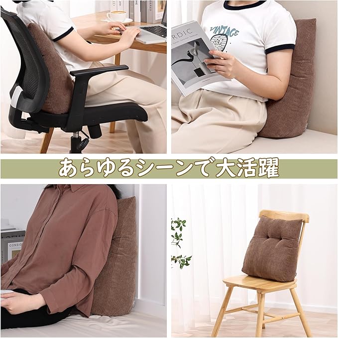 【さまざまなシーンに対応】オフェスでの仕事やテレワーク、読書、ゲームなどで長時間同じ姿勢の緊張やストレスを緩和し、腰椎をやさしくサポートします。