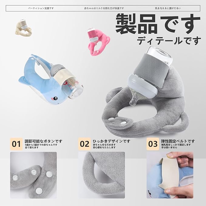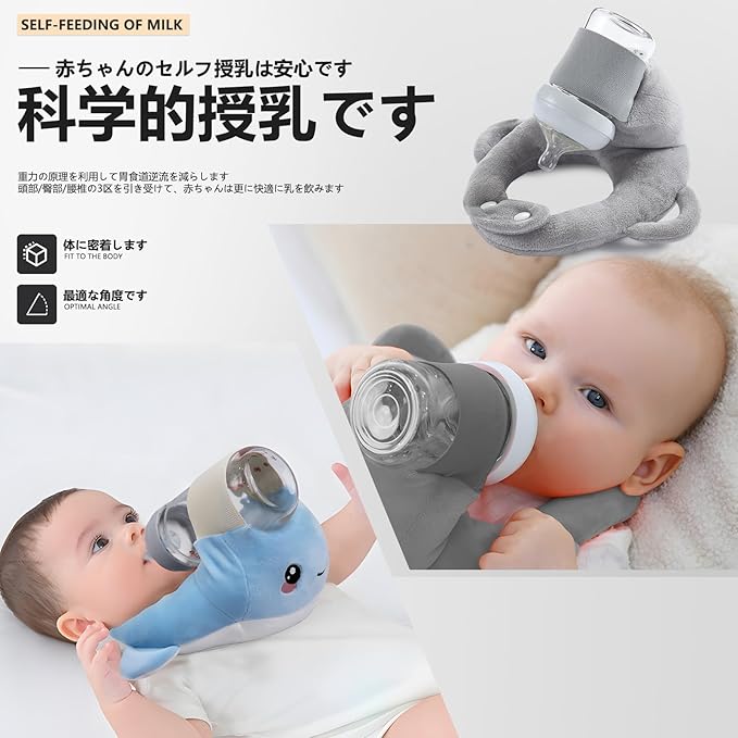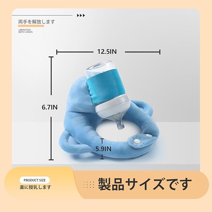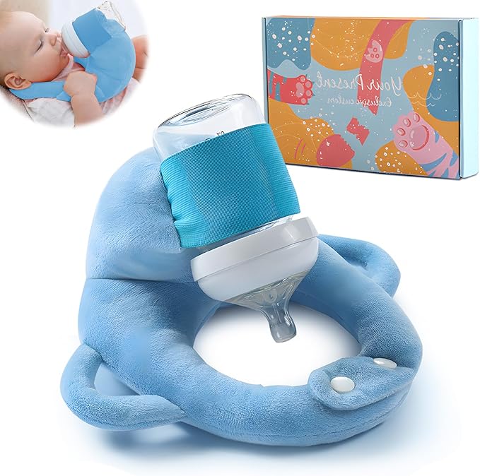 CmQbifa 哺乳瓶ホルダー 授乳クッション ハンズフリー 両手が自由 かわいい形がいろいろ 柔らかく通気性に優れています 【サイズ調整可能、洗濯機で洗えます】 (青色)