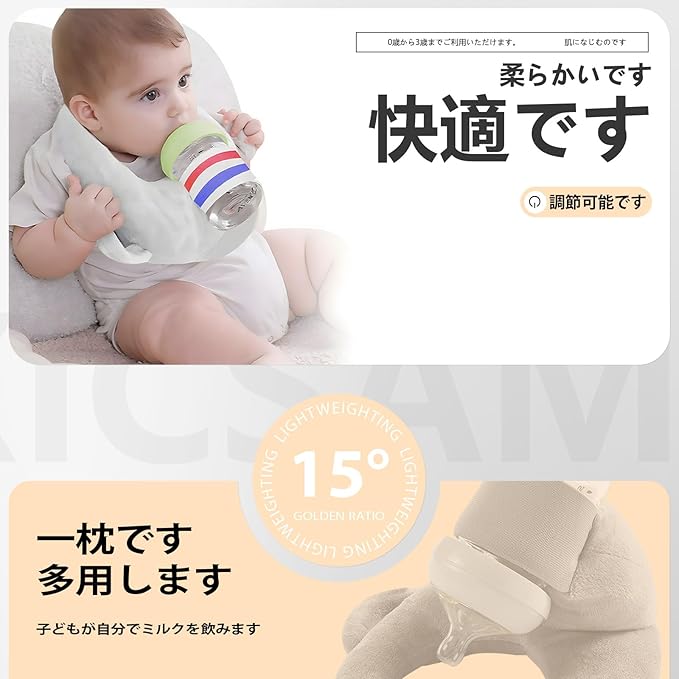 ハンズフリー授乳で育児がラクに:手を使わず授乳可能。腕や肩の負担を軽減し、ママ・パパの負担を軽くします