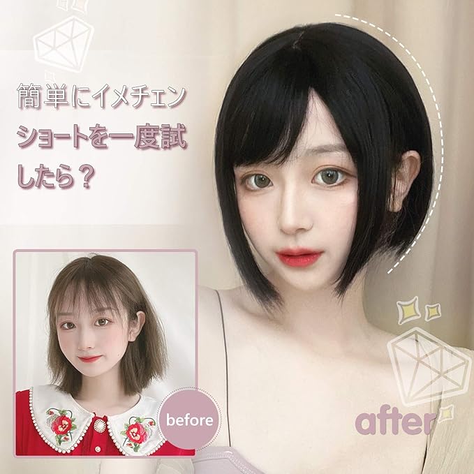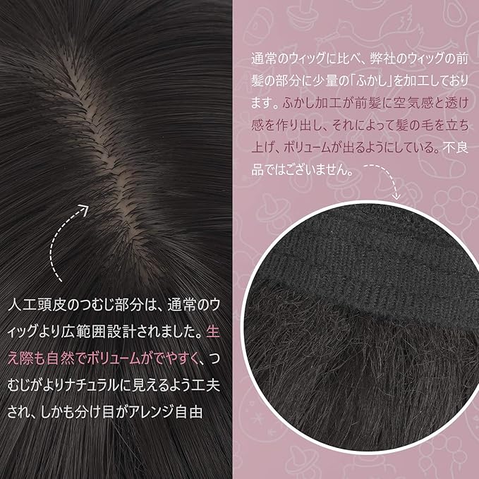 【長さ】前髪約13cm;サイド約30cm;後髪約32cm(自然状態での採寸)(つむじ部分から測った長さです。サイズは計りにより、1cm-3cm誤差が生じる場合がございます。)