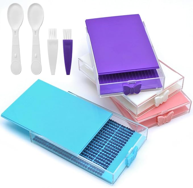 内容物:ダイヤモンドアート収納トレイ4個、ブラシ2個、スクープ2個が付属。ダイヤモンドを取り出して集めるのに役立ちます。
