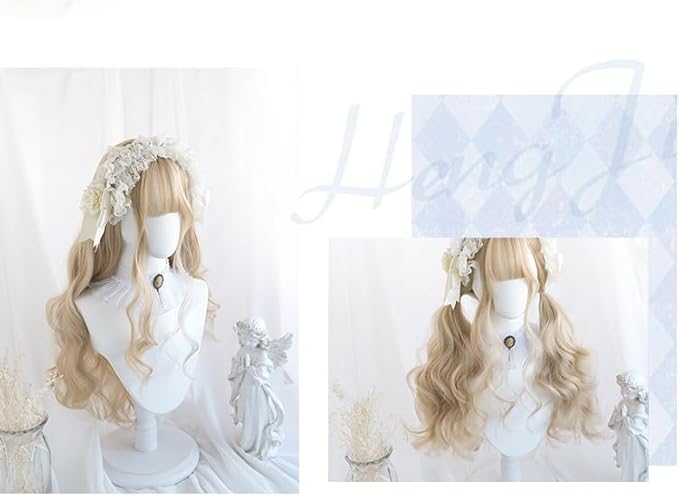 GhostNef レディース 日常用 ウィッグ ゴールド ロング カール ウィッグ 真夏のクリームゴールド ウィッグ ロリータ フルウィッグ コスプレ 透气性高い 自然 簡単着用 耐熱性 原宿風 韓国風 女装 仮装 変装用+ネット付き