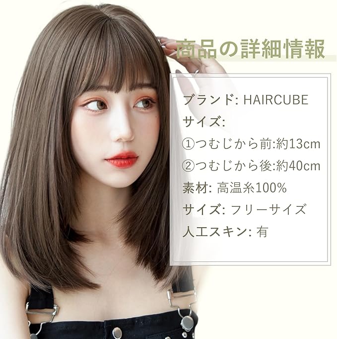 HAIRCUBE ウィッグ セミロング ストレート レイヤードカット ミディアム フルウィッグ かつら レディーズ wig ぱっつん前髪 自然 小顔 耐熱 原宿系 ロリータ 日常 ネット/櫛付(ダークブラウン)