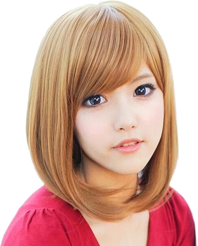 LESUN ウィッグ フルウィッグ ボブ 斜め前髪 セミショート ふんわり 小顔効果 ゆる可愛い 小顔 耐熱 つけ毛 ネット付 (亜麻色)