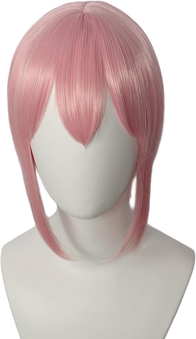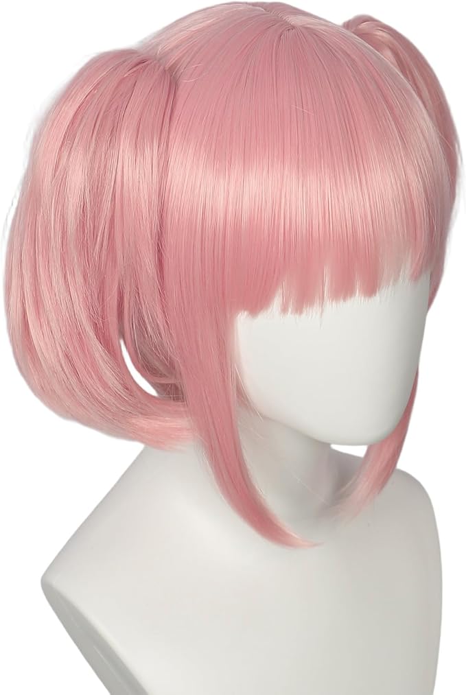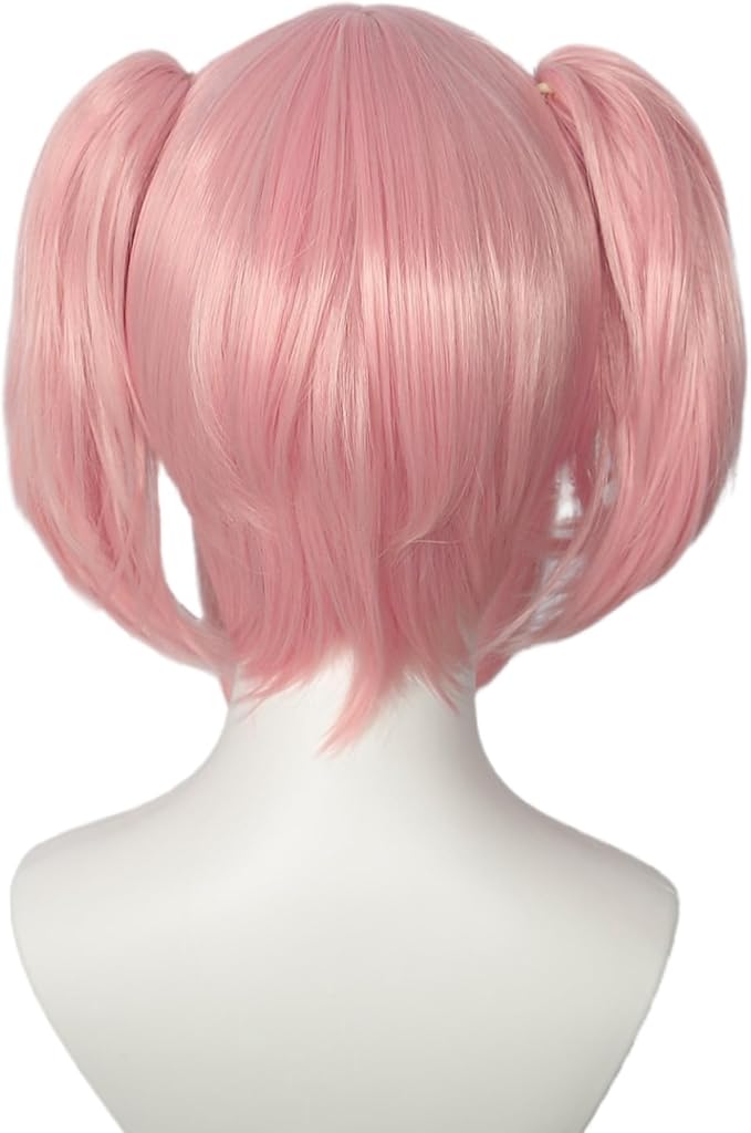Linfairy アニメコスプレ ショートストレートウィッグ ダブルポニーテールクリップ付き ハロウィンコスチュームパーティー コスプレウィッグ 女性用 (ライトピンク)